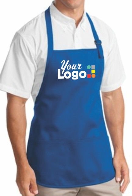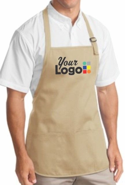 Unisex style, This versatile apron has a Teflon finish for added stain protection. 100% Cotton twill with Teflon finish for added stain protection, Three pouch pockets, pen pockets, 1 in wide neck and waist ties, adjustable neck strap. Measures: 22 inchw x 24 inch, Comes with a logo of your choice; 24 minimum; Turnaround Time 10-12 days.