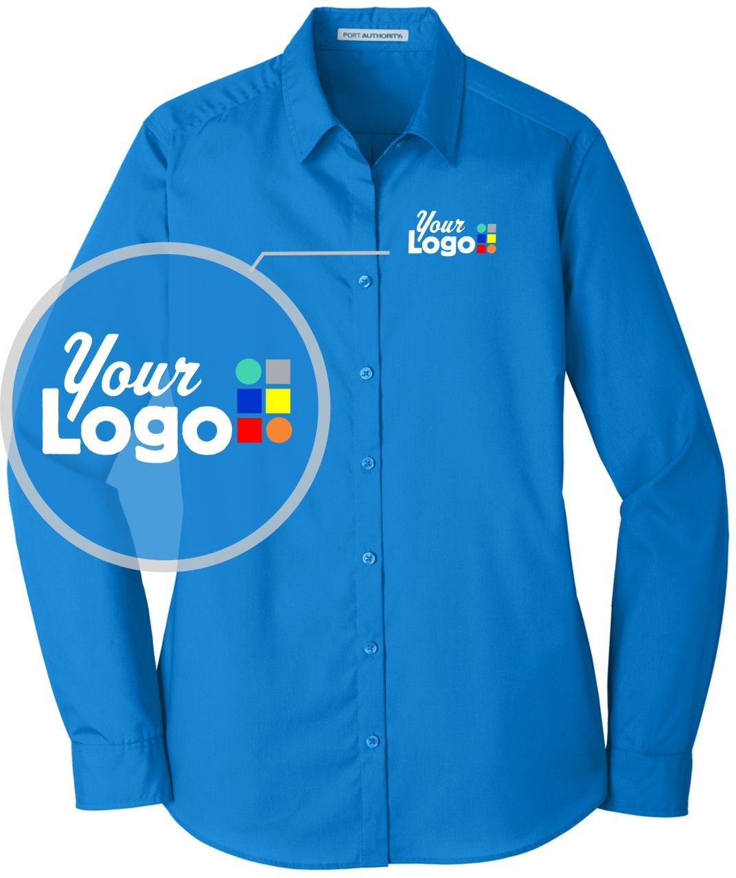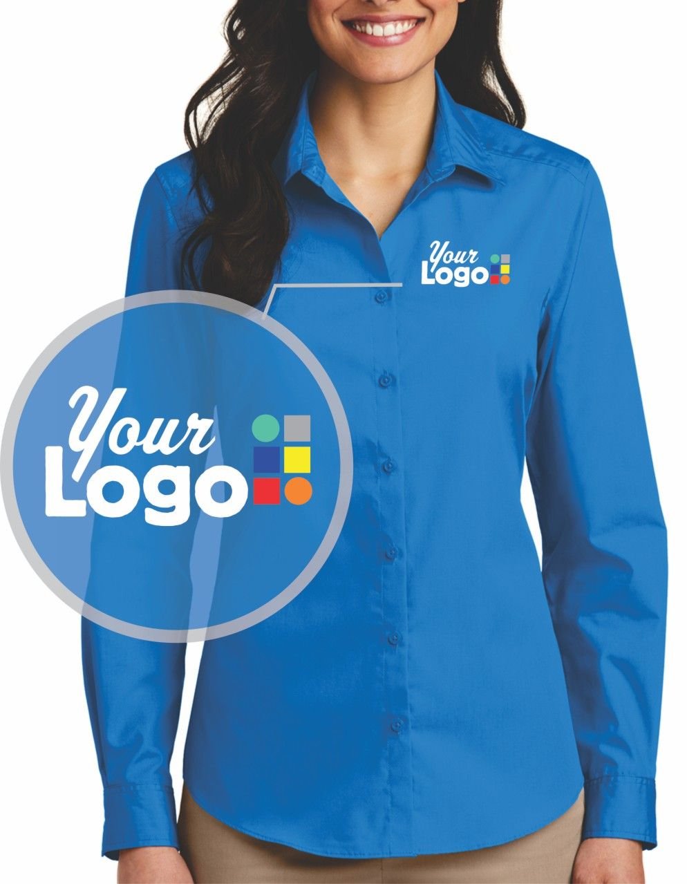 Lightweight and breathable, our cotton-rich shirts keep their professional edge thanks to a stain-release finish, which releases stains during washing. Budget-friendly and durable, these virtually carefree shirts feature an Easy Care blend and finish. They also color-coordinate with our Core Classic Pique styles for seamless uniforming. 3.3-ounce, 55/45 cotton/poly. Dyed-to-match buttons. Open collar. Bust darts Button-through sleeve plackets. Adjustable cuffs. Comes with a logo of your choice to be embroidered on left chest; Turnaround Time 8-12 day, 6 minimum.